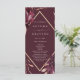 This wedding ceremony program features a watercolor flower wreath of dahlias, garden roses, and peony in burgundy red, maroon, blush pink over fall leaves with a faux gold diamond shape frame. For more advanced customization of this design, please click the BLUE DESIGN TOOL BUTTON. Matching items are also available.