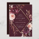 Ce faire-part de mariage est orné d'une couronne de fleurs d'aquarelle de dahlias, roses de jardin et de pivoines en rouge bordeaux, marron, rose roux sur les feuilles d'automne avec un cadre en faux diamant d'or. Pour une personnalisation plus avancée de cette conception, cliquez sur le BOUTON OUTIL DESIGN BLEU. Des articles correspondants sont également disponibles.