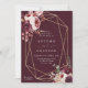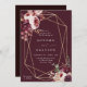 This wedding invitation features watercolor flower bouquets of dahlia, garden rose, peony, pampas grass, and hydrangea in burgundy red, terracotta, blush pink over fall leaves with a faux gold geometric frame. For more advanced customization of this design, please click the BLUE DESIGN TOOL BUTTON. Matching items are also available.