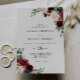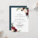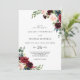 Ce faire-part de mariage bordeaux et rustique d'automne est parfait pour un mariage moderne. Le design est composé de fleurs bordeaux, rouges, navales, bleues et rousses rayonnantes et gracieuses peintes à la main, inspirant la beauté naturelle.