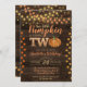 This rustic autumn harvest invitation features fall leaves, string lights, and glitter pumpkins on a chic wooden background. Perfect to invite guests to your little one's birthday party. Easy to personalize with custom options.