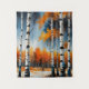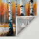 A dreamy autumn forest with tall birch trees standing against a moody sky. Warm golden leaves contrast with cool blue tones, creating a peaceful, cozy vibe. Perfect for nature lovers who crave those crisp fall mornings and serene woodland escapes.