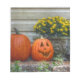 A pumpkin, jack-o-lantern and yellow mums are perfect for an autumn display.