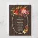 Watercolor floral elements in the gorgeous colours of a midwestern autumn, set over a faux wood background, finished with framed ivory calligraphy...highlight the bride and groom's names, with all other event details presented in smaller, modern, fonts. The result is a design array perfect for your autumn wedding! Pair with matching products, for a complete wedding suite.