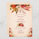 Watercolor floral elements in beautiful fall colours, set over a blushed ivory canvas, finished with autumn red calligraphy...highlight the bride and groom's names, with all other event details presented in complimentary fonts. The result is a beautiful design array appropriate for both casual and more formal wedding motifs. Pair with matching products, for a complete wedding suite.