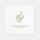 This custom cocktail napkin features a hand drawn sprig of autumn leaves above space for the couple's names and their wedding date. They're perfect for a fall wedding reception or rehearsal dinner.