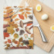 Autumn squirrels and autumnal flora on off white kitchen towel