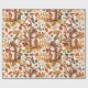 Autumn squirrels and autumnal flora on off white wrapping paper
