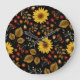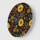 Autumn Sunflowers: Maple Black Background Large Clock