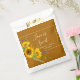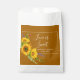 Pretty Autumn/ Fall wedding favour bag features watercolor sunflower bouquet on golden brown background with white customizable text blocks in modern fonts