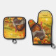 Beautiful Autumn Turkey Pumpkins Thanksgiving Oven Mitt & Pot Holder Set