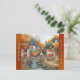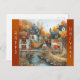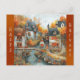 Autumn Village Bridge Illustration Holiday Postcard