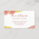 Vibrant business card printed to look as though it's painted with gorgeous watercolors in peachy orange, fiery red, and golden yellow. Your name in a pretty script. The back is white with a few watercolor brushstrokes in matching colours.