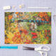 Teaming lush green trees with fallen brown leaves, and a warming palette in a fashionable midnight blue with bursts of vibrancy.
