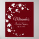 Pretty and modern bridal shower sign design features a spray of white flowers and white customizable text on Autumn wine background. Mount or frame for a beautiful tabletop display.