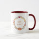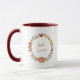 A Mug with an Autumn Wreath and its maple, beech, oak and hazel leaves, mushroom, acorn, pumpkin, chestnuts and walnuts in fall colours. It also includes a customizable text and a monogrammed letter! Perfect for a gift to a girlfriend or a lover of nature and autumn feeling!