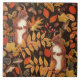 Autumnal squirrels and flora on dark brown tile