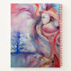 Colourful ,whimsical ,romantic, symbolist contemporary figurative watercolor painting for a spiritual,mystic legend figure in soft blue,pink ,red, purple,violet ,white colours by Alessandro Lumini 1988 . This cool and artistic design is also a beautiful gift for special occasions ,birthdays ,weddings,Christmas, holiday,Valentine's Day,Mardi Gras ( Fat Tuesday ) season. Avalon (probably from the Welsh Celtic word afal, meaning apple; is a legendary island featured in the Arthurian legend, famous for its beautiful apples. It first appears in Geoffrey of Monmouth's 1136 pseudohistorical account "The History of the Kings of Britain" as the place where King Arthur's sword Caliburn (Excalibur) was forged and later where Arthur is taken to recover from his wounds after the Battle of Camlann. As an "Isle of the Blessed" Avalon has parallels elsewhere in Indo-European mythology, in particular the Irish Tír na nÓg and the Greek Hesperides, also noted for its apples. Avalon was associated from an early date with immortal beings such as Morgan le Fay.