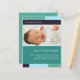 "With Joy" turquoise & faire-part de naissance photo aqua. Personnalisez ce modèle de carte postale moderne et élégant avec la photo de votre petite fille et les détails pour une faire-part de naissance unique.