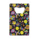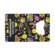 Bouteille de carte de crédit noire sucrée avec motif de pickleball de style 90 Super et rétro avec boulettes jaunes et arrière - plan noir.