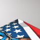 Check out Captain America holding his shield ready, white stripes of the American flag flowing around him.