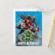 Check out the Avengers with Hulk leading the charge with a smash, and in the back: Thor, Iron Man, Captain America, Black Widow, Falcon, and Hawkeye.