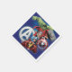 Check out Hulk, Thor, Captain America, and Iron Man stacked vertically in this high tech style graphic, featuring the Avengers Logo with starburst lighting.