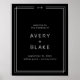 Ce modèle de signalisation mariage de la suite Avery est doté d'un arrière - plan noir foncé, d'un cadre double blanc fin et d'un type sans serif propre. Il crée un look moderne et poli, adapté aux lieux de la ville, aux galeries et aux mariages du soir. Achetez un poster imprimé ou un téléchargement instantané que vous pouvez imprimer localement. Customisez-le avec le nom du couple, la date et l'emplacement du mariage.