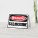 Avertissement Carte de voeux SUBMISSIVE vous pouvez customiser à www.WarningSignShirts.com et comporte un panneau rouge et noir d'avertissement et SOUMISSIVE en lettres noires en gras pour avertir le monde. Vous pouvez également customiser votre propre panneau d'avertissement Carte de voeux avec le texte que vous voulez.