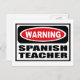Attention Carte postale ESPAGNOLE vous pouvez customiser à www.WarningSignShirts.com et comporte un panneau rouge et noir d'avertissement et un enseignant ESPAGNOL en lettres noires en gras pour avertir le monde. Vous pouvez également customiser votre propre panneau d'avertissement Carte postale avec le texte que vous voulez.