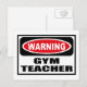 Avertissement GYM TEACHER Carte postale vous pouvez customiser à www.WarningSignShirts.com et comporte un panneau rouge et noir d'avertissement et GYM TEACHER en lettres noires en gras pour avertir le monde. Vous pouvez également customiser votre propre panneau d'avertissement Carte postale avec le texte que vous voulez.