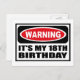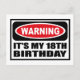 Attention C'EST MA 18E ANNIVERSAIRE Carte postale vous pouvez customiser à www.WarningSignShirts.com et comporte un panneau rouge et noir d'avertissement et C'EST MA 18E ANNIVERSAIRE en lettres noires en gras pour avertir le monde. Vous pouvez également customiser votre propre panneau d'avertissement Carte postale avec le texte que vous voulez.