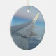 Aviation themed Airplane Christmas Photo Custom Ceramic Ornament. This photo was taken by me during one of my flight. I love sitting by the window because I love seeing the clouds and sky. Customize it with a personal message in the back and replace photo or use mine. Perfect for a pilot, flight instructor or aviation enthusiast.