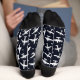 Cool dark blue and white socks printed with a flying airplanes pattern. Fantastic gift for aviation enthusiasts.