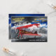 This unique birthday card features a realistic red biplane, banner, compass, and clouds against a blue sky background. Personalize with your info.