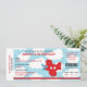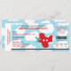 Invitation de billet d'avion en rouge et le bleu avec l'arrière - plan de nuage. Perfectionnez pour la fête d'anniversaire de garçons/baby shower.