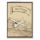 Voyage de fève, carte 1800's vintage, rouleau et avion.