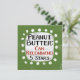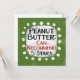 Un design typographique amusant qui dit "Beurre d'arachide : Peut Recommander, 5 Étoiles". C'est du texte en noir et rouge sur un rectangle blanc avec des points blancs amusants autour, le tout sur un arrière - plan vert.