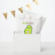 A cute birthday favour bag with a phrase that says "Avo great birthday" featuring a kawaii hand-drawn avocado. Illustration by Kristine Lee. For more designs and illustrations, visit www.kristineleedesigns.com