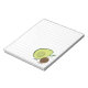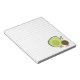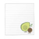 A notepad with smiling characters of an avocado and avocado pit, over white paper with grey lines.