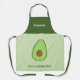 An apron in green tones with an avocado illustration and customizable texts or names. A nice gift for a cooking chef, a farmer, etc.