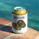 You can change the background colour and change the text on this can insulator sleeve. The image is derived from my original acrylic painting, Avocado.