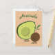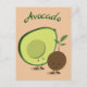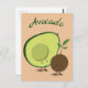 Postcard with a cartoon avocado and avocado pit. The word ‘Avocado’ can be customized