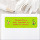 An adoring lovable design, this avocado inspired address label features a green background with pink text. There is a cute avocado graphics portraying a girl and boy. Use the templates to personalize.