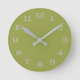 Stylish Solid Colour Green Round Clock in a vibrant avocado shade, accented with light grey fonts. This retro-inspired timepiece harkens back to the beloved 1970s colour palette, perfect for adding a touch of vintage charm to any interior. Highly customizable, you can easily personalize it with your name, initials, logo, graphics, or photos. Whether you're enhancing a retro-themed space or adding a unique touch to your decor, this avocado green clock offers both nostalgia and modern appeal.