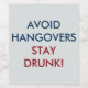 Be nice by adding warning labels to your wine bottles with a tip on how to avoid a hangover with this funny quote / saying gag gift: "Avoid Hangovers Stay Drunk". With blue and red text / font that can be changed and fully customized.