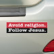 "Avoid religion. Follow Jesus" Bumper Sticker