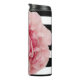 Turn heads and feel beautiful with this eye popping bold and classy, stylish pink peony and black white stripe thermal bottle!