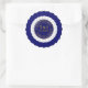 Award Ribbon, Blue and White-1st (first)-A round ribbon award with gold text and rims. In the centre of the award the text reads: 1st Place. Circling around the gold edges more text reads: Congratulations! two times. This award design is available in assorted colours and styles. It's available in 1st, 2nd and 3rd place awards. The text circling either reads: Congratulations or Runner Up. Choose your size of Round Stickers! Or use this design on any of Zazzle's products.