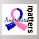 Display your commitment to advocating awareness for Male Breast Cancer with Awareness Matters t-shirts, apparel, merchandize, and gifts featuring contrasting text fonts and a grunge-style blue and pink Male Breast Cancer support ribbon in an eye-catching layout.